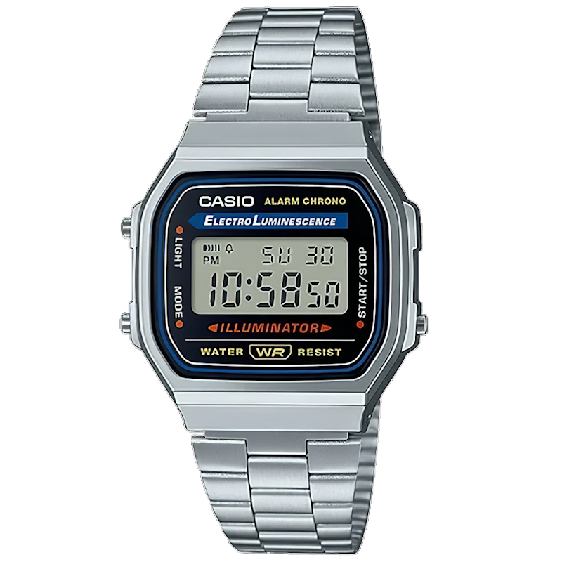 Casio ur A168WA-1YES - Sølv og sort - Vintage Retro Digital