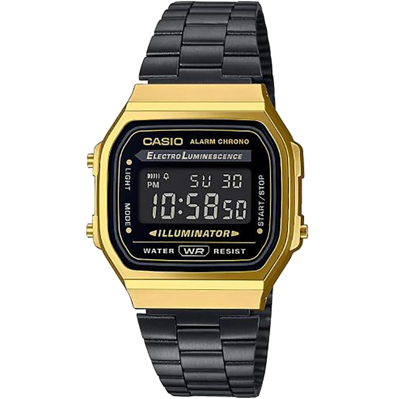 Casio ur A168WEGB-1BEF - Sort og guld - Vintage Retro Digital